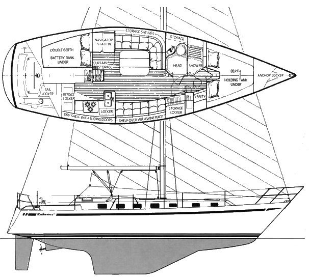 A Ballast/Displacement ratio of 40 or more translates into a stiffer, more powerful boat that will be better able to stand up to the wind.